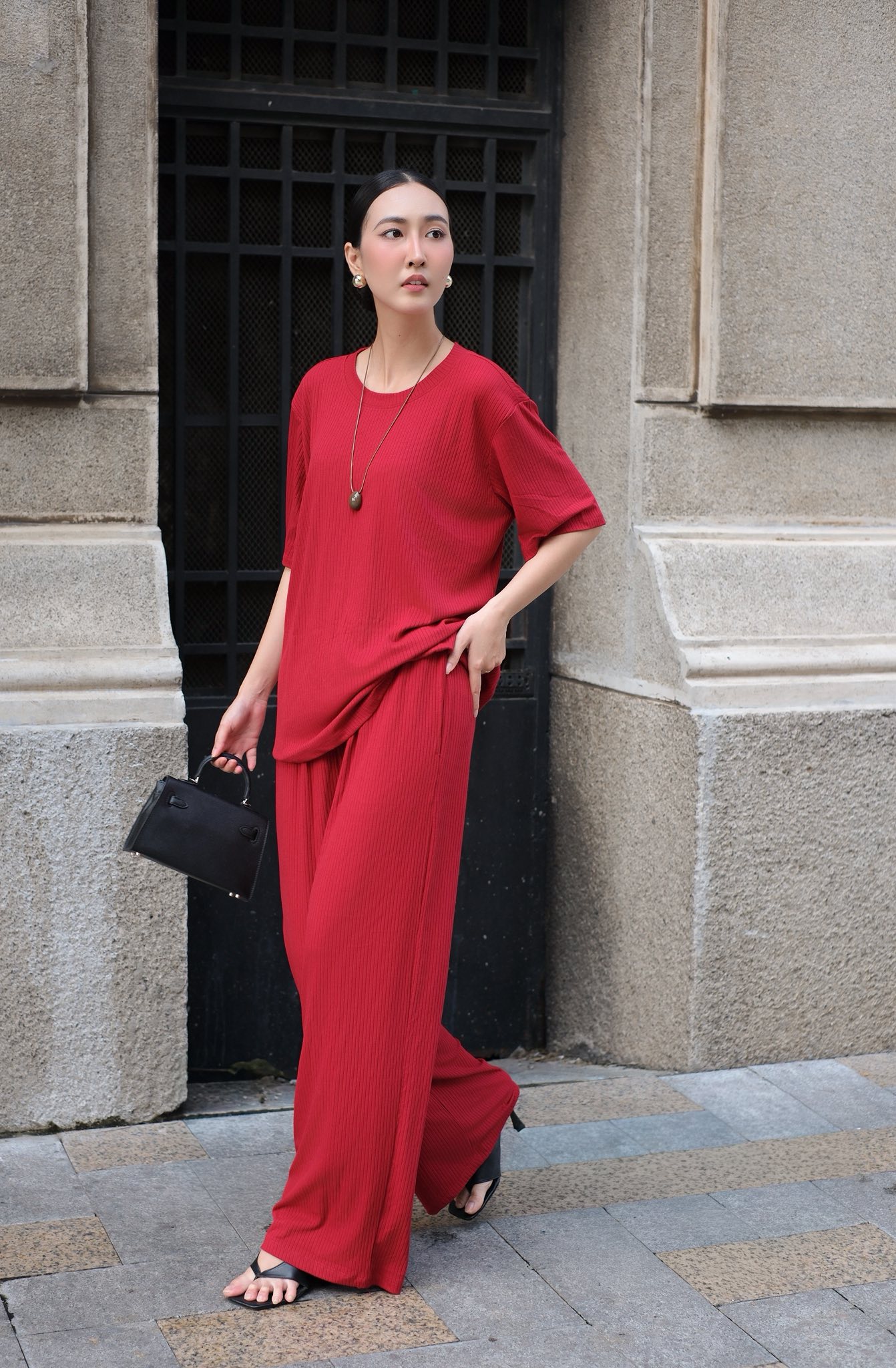 Chất thun gân len lụa, rũ nhẹ mát dễ chịu.